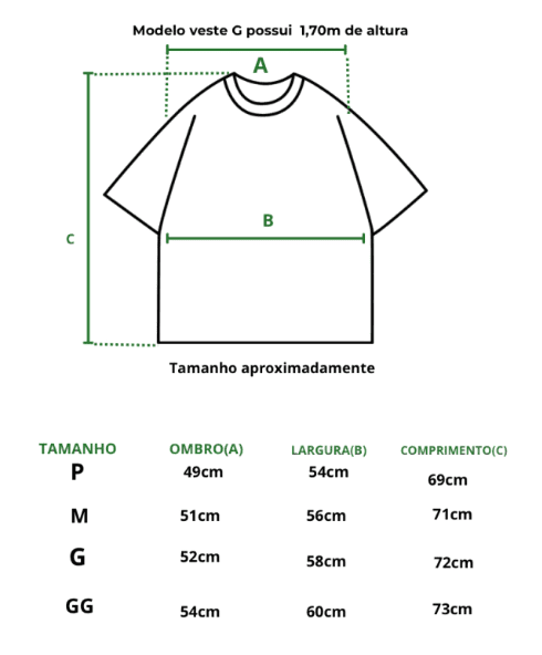 Com um caimento boxy fit, a camiseta apresenta um comprimento mais encurtado e largura maior, ideal para um visual moderno e descontraído. O design é complementado por uma gola de 3 cm com pesponto duplo com o silk (REAL ORIGINAL BRASILEIRO) que destaca a autenticidade da peça.